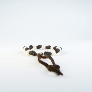Pulsera de cuero artesanal, con un grosor aprox. de 10mm, realizada con cuero de curtido vegetal de 2 mm de espesor y trenzado de 4 tientos en redondo, con detalle decorativo imitando a un alambre de púas, su nombre Sin Fronteras nos recuerda a muchos alambres que hoy en día, aún existen en muchas de ellas, lleva un cierre de seguridad que le permite quitar y poner de una forma muy sencilla. Todos los metales que utilizamos son de zamak bañados con 10 micras de plata, para evitar alergias a ciertos metales y aumentar la durabilidad y calidad del producto