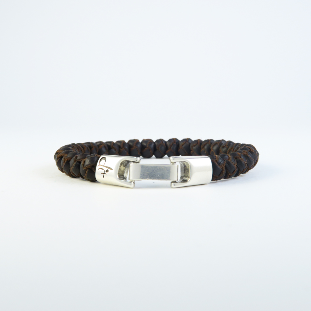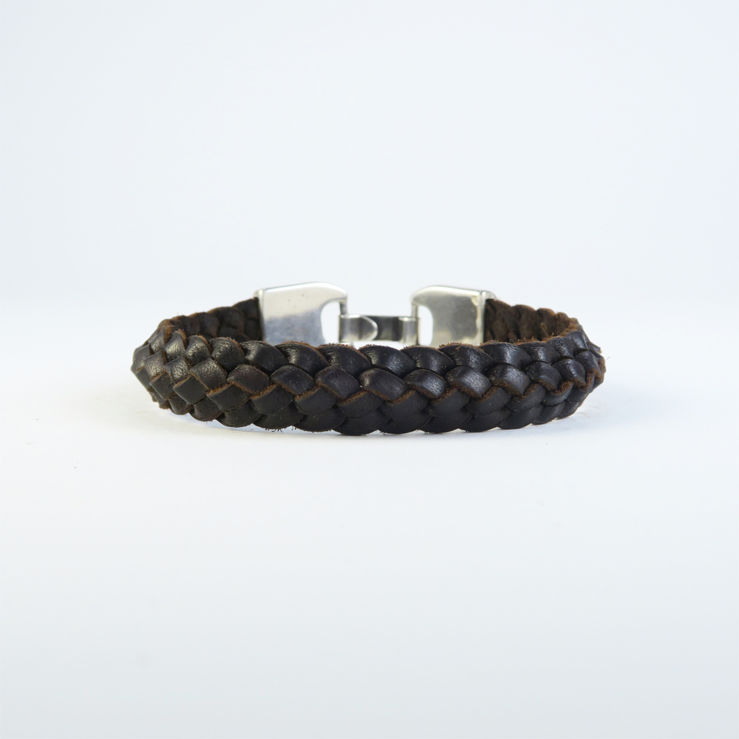 Pulsera de cuero artesanal, realizada con cuero de curtido vegetal, realizada  en todo su longitud con 4  tiras de cuero de 1 mm de espesor, cada bola esta trabajada con un punzón y unida a la siguiente en una solo una pieza, sin duda un modelo no muy corriente de ver, pero que no pasara desapercibida por su curiosa elaboración,  lleva un cierre de seguridad que le permite quitar y poner de una forma muy sencilla,  todos los metales que utilizamos son de zamak bañados con 10 micras de plata, para evitar alergias a ciertos metales y aumentar la durabilidad y calidad del producto.